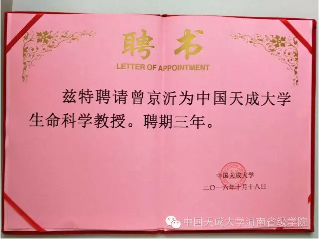 天成大学特聘刚地商学院优秀教师为天成生命科学院教授仪式在常州举行