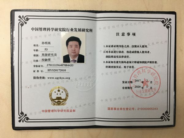 为全面贯彻党的十八届三中、四中全会重要精神,充分发挥中国管理科学研究院行业发展研究所专家、学者的资源优势,以管理创新为驱动力,助推地方经济建设,切实帮助广大中小企业提升管理水平,提高核心竞争力,加快我国各行各业经济转型又好又快发展,建设“美丽中国梦”,中国管理科学研究院行业发展研究所决定面向社会各界、各领域做出突出贡献的部分优秀企事业单位的负责人、专家、学者增选为特邀高级研究员。鉴于孙明高董事长在产网结合和产融结合领域的影响力,以及做出的突出贡献,近日,孙明高董事长被中国管理科学研究院行业发展研究所聘为高级研究员。
