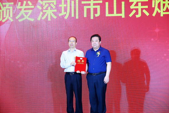 随后,深圳市山东烟台商会颁牌仪式开始,由中共烟台市委常委、统一战线工作部部长金志海为深圳市山东烟台商会孔繁鹏会长颁牌。在烟台市委、市政府的大力支持下,经深圳市民政局批准,深圳市山东烟台商会正式成立。