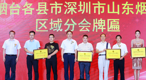 最后,由蓬莱市委统战部副部长、工商联党组书记李政令,栖霞市工商联主席林德义,烟台市委统一战线工作部办公室副主任于丁,莱阳市工商联党组副书记姜鹏飞,芝罘区工商联党组书记刁学仑,牟平区投资促进中心主任杨绍利,海阳市投资促进中心副主任刘晓东,烟台市政府驻深办主任姜进强,招远市人大副主任、工商联主席李广武,龙口市工商联副主席江泽辉颁发烟台各县市深圳市山东烟台商会蓬莱分会、栖霞分会、莱州分会、莱阳分会、芝罘分会、牟平分会、海阳分会、福山分会、招远分会、龙口分会牌匾。