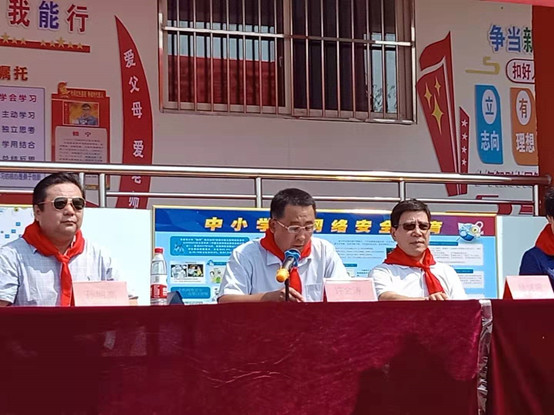 捐献活动现场,首先,由少先队员向捐助仪式的嘉宾敬献红领巾。