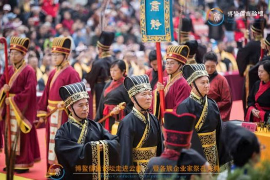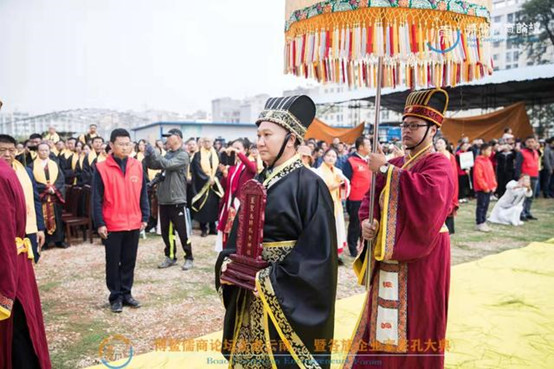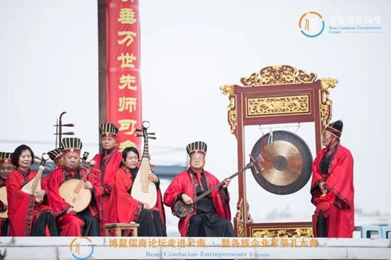 典礼开始前,全体起立,奏唱国歌。随后,博鳌儒商论坛云南办事处副主任、曲靖市麒麟区传统文化促进会执行会长沈丽华,博鳌儒商论坛常务副理事长、世界孔子后裔联谊会执行会长、孔子第78代嫡孙孔众,博鳌儒商论坛理事长、中华孔子学会副会长、中山大学黎红雷教授,先后致辞。
