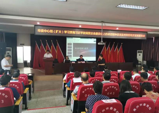 2019年7月10日,盖州市在党校组织召开了市委中心组(扩大)学习贯彻习近平在民营企业座谈会上的讲话精神、促进盖州民营经济发展报告会。盖州市四大班子领导,北海、仙人岛管委会班子成员,乡镇办事处、市直机关、部委办局主要领导,工商联会员,新的社会阶层联谊会会员,新一代非公经济人士联谊会会员,共计230余人参加了会议。