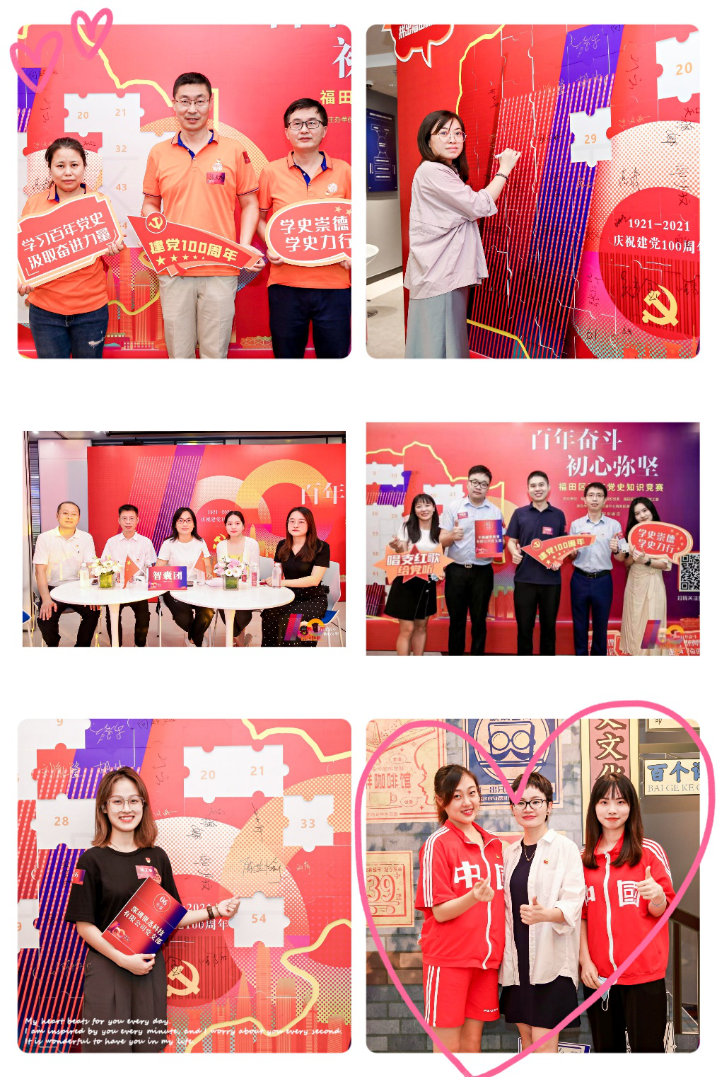 此次知识竞赛融知识性、教育性、趣味性于一体,同时设置了党史文化廊网红打卡点,两新党员现场开启打卡之旅,集齐“党史一条街”“党群咖啡馆”“政务超市”“实事自助机”“物业联盟”等咖啡时光印章。通过互动式、沉浸式、体验式等活泼的方式,让大家更深刻地理解、感受新时代党的内涵,追寻党百年的足迹,是福田区党史学习教育的生动的一个环节。我们深信,在我们全体党员干部的共同努力下,我们的生活将更加美好,福田的发展定能勇攀高峰,再创辉煌!