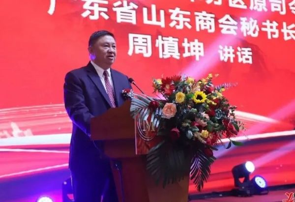 广东省山东商会周慎坤秘书长讲话。他说,非常高兴和大家相聚在美丽的茂名,共同和大家庆祝茂名市山东商会的成立。茂名山东商会的成立使省商会分会的建设再传佳音,商会分会是由原来的8家,增加到了现在的25家,同时新成立4家专委会。关心商会建设,支持商会发展,已成为大家的共识;我们的中心思想就是,不让一个在粤鲁商掉队,不让一个鲁商游离在组织之外。几年来,会员主动和商会秘书处联系的多了,找商会帮助解决问题的多了,分会与分会之间相互抱团发展多了,说明商会对会员间的凝聚力提高了。会员们逐步感到参加商会不只是形式,而是会给企业带来发展的新机遇。今天,茂名市山东商会的成立是在茂名的山东籍民营企业家由分散创业走向集群发展的一大喜事盛事,也是省商会发展中的一个重要里程碑。商会的成立,整合搭建了一个宣传交流、凝心聚力共同发展的平台,标志着交流合作步入了组织化、规范化、平台化的新阶段,共同进步、共谋发展、合作共赢开启了新征程。