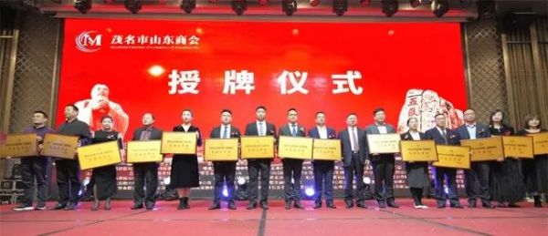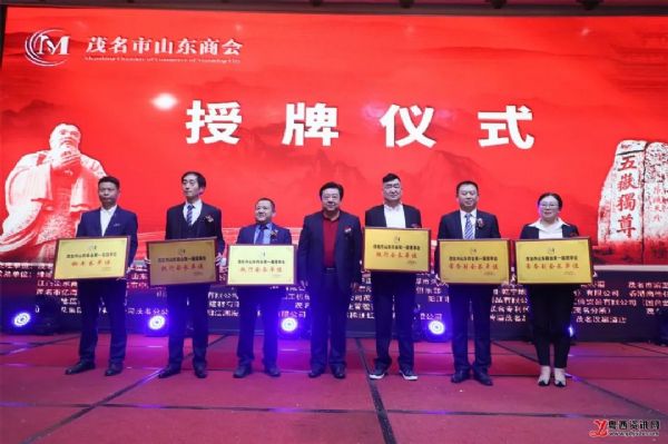 会上,颁发了茂名市山东商会执行会长、常务副会长、副会长、会员牌匾。