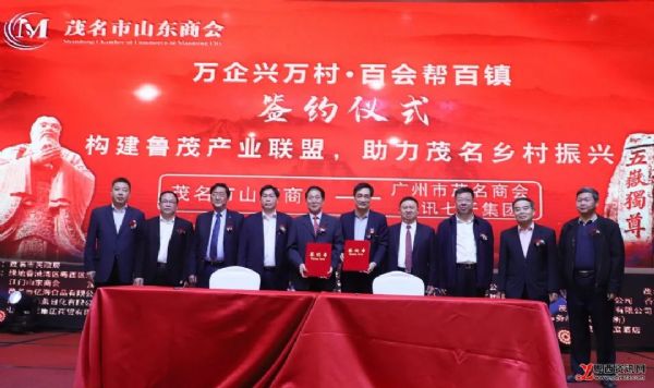 会上,茂名市山东商会与广州市茂名商会签署了构建鲁茂产业联盟助力茂名乡村振兴协议。广东省山东商会监事长李建国、秘书长周慎坤等领导上台见证签约仪式。