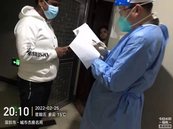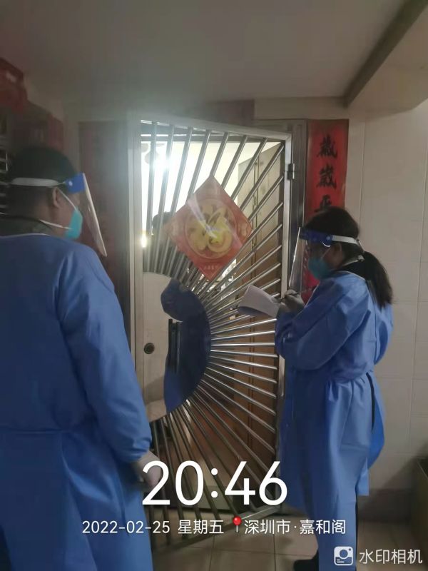 2022年2月25日19:00,集团党总支副书记赵延军,党员吴东旭、刘微、周爱先,集团员工代表徐爱纯到达福田区福南社区党群服务中心集合。接到任务后,全副武装前往嘉汇新城嘉和阁、嘉祥阁、城市·杰座,协助社区工作人员开展疫情防控核查登记工作。