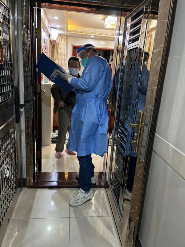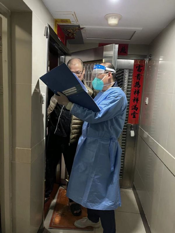 2022年2月26日,集团党总支副书记赵延军与党员刘微再次参与志愿服务,全副武装前往城市·杰座2栋,协助社区工作人员对20-24楼居民开展疫情防控核查登记工作。
