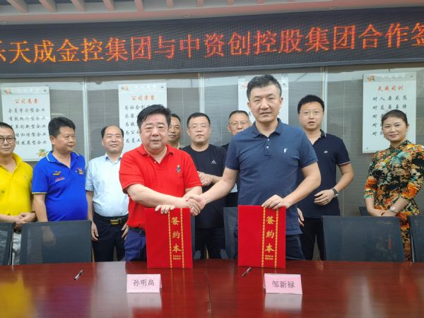 经过多次沟通合作,深圳市乐天成金控集团与中资创控股集团达成合作意向。2022年5月24日,鲁商联盟会常务副会长、广东省山东商会常务副会长兼深圳会长、广东省异地商会联合会执行会长、深圳市齐鲁文化研究会会长、深圳市乐天成控股集团董事长孙明高与中资创控股集团执行董事邹新禄正式签约。