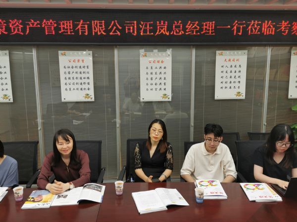 随后,汪岚总经理介绍了江苏安策资产管理公司的基本情况。汪岚总经理表示,希望与集团多沟通、多交流,合作共赢,携手共进,共创未来。随后,双方就拟合作项目进行了深入探讨。