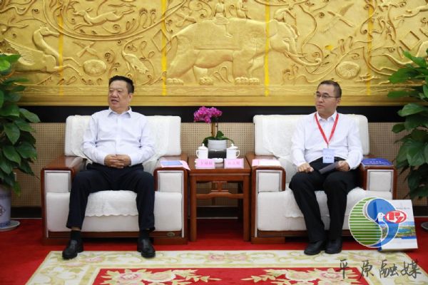 ▲会前,德州市政协主席卜祥联、平原县委书记王玉东共同会见重要嘉宾