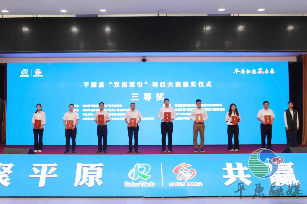 活动现场举行多项荣誉授予仪式。平原县委副书记、县长齐强为“平原县招商引才大使”颁发证书;德州市人才事业发展中心副主任、市委组织部人才办主任顾翔宇为市级“科技副总”颁发聘书。平原县人大常委会主任杨传智,县政协主席于春君,县委常委、政法委书记张妍分别为“双招双引”项目大赛一、二、三等奖获奖项目颁奖。