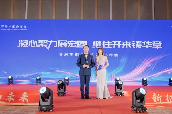 年会由青岛电视台主持人李文妤与青岛市烟台商会理事、青岛美利家具科技有限公司总经理王学利共同主持。