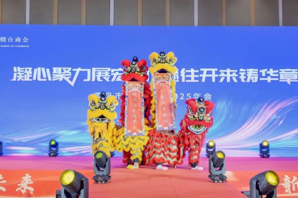 活动在激昂欢腾的《舞狮子》表演中正式拉开帷幕。伴随着铿锵的锣鼓声,祥瑞的狮子腾挪起舞,展现出昂扬的斗志与吉祥的祝福,瞬间点燃全场热情,寓意烟台商会新一年生机勃勃、前程似锦。