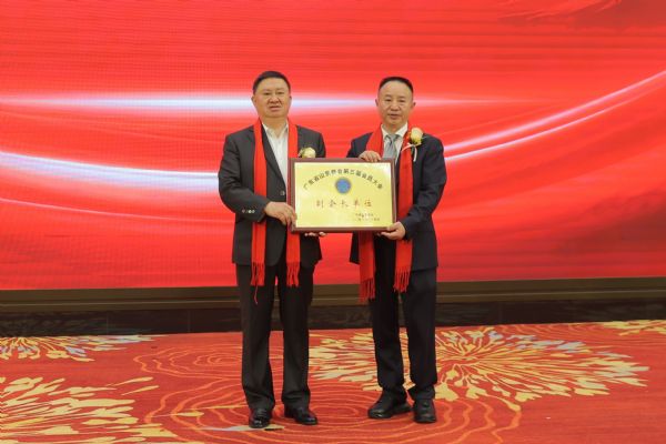 ▲山东省驻广州办事处主任毕泗亮为荣誉会长授牌