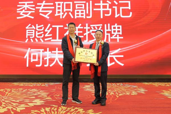 ▲佛山市社会组织党委专职副书记熊红祥为何扶华会长授牌