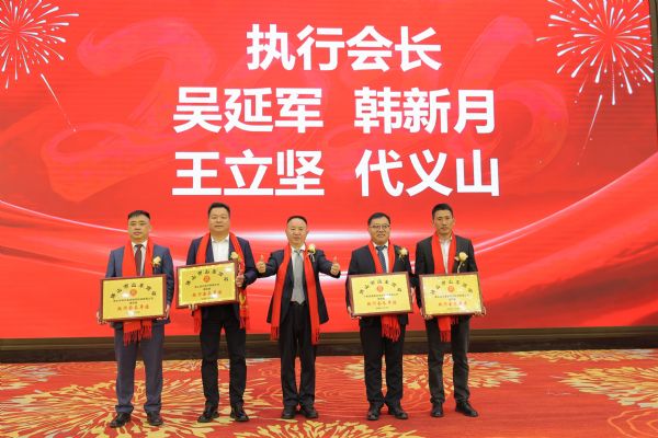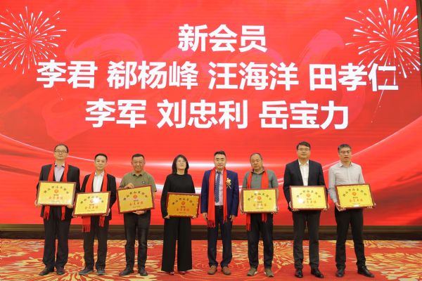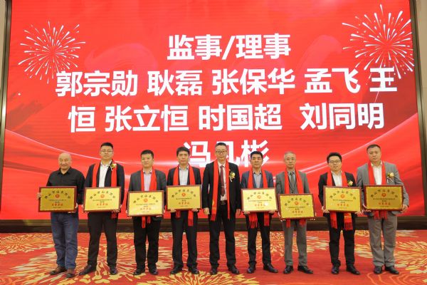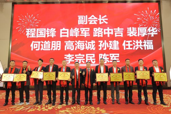 ▲何扶华会长依次为监事长、秘书长、执行会长等新一届理事会、监事会成员授牌