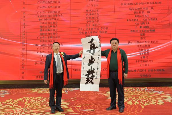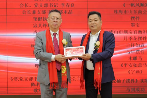 ▲广东省山东商会周慎坤秘书长为何扶华会长颁发广东省山东商会副会长牌匾