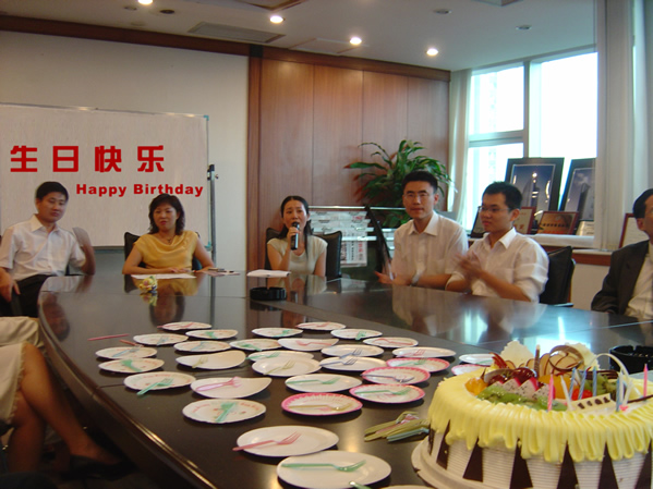 6月29日,在综合管理部的组织下,大家欢聚在大会议室为6月过生日的四位寿星们共庆生日,会上,大家一齐向他们表示了自己最真挚的祝福,同时寿星们也以精彩的节目回报了对公司、对同事们的感恩之心,大家都被一种浓浓的亲情包围着,陶醉在欢乐的气氛当中,感觉着大家庭的温暖。